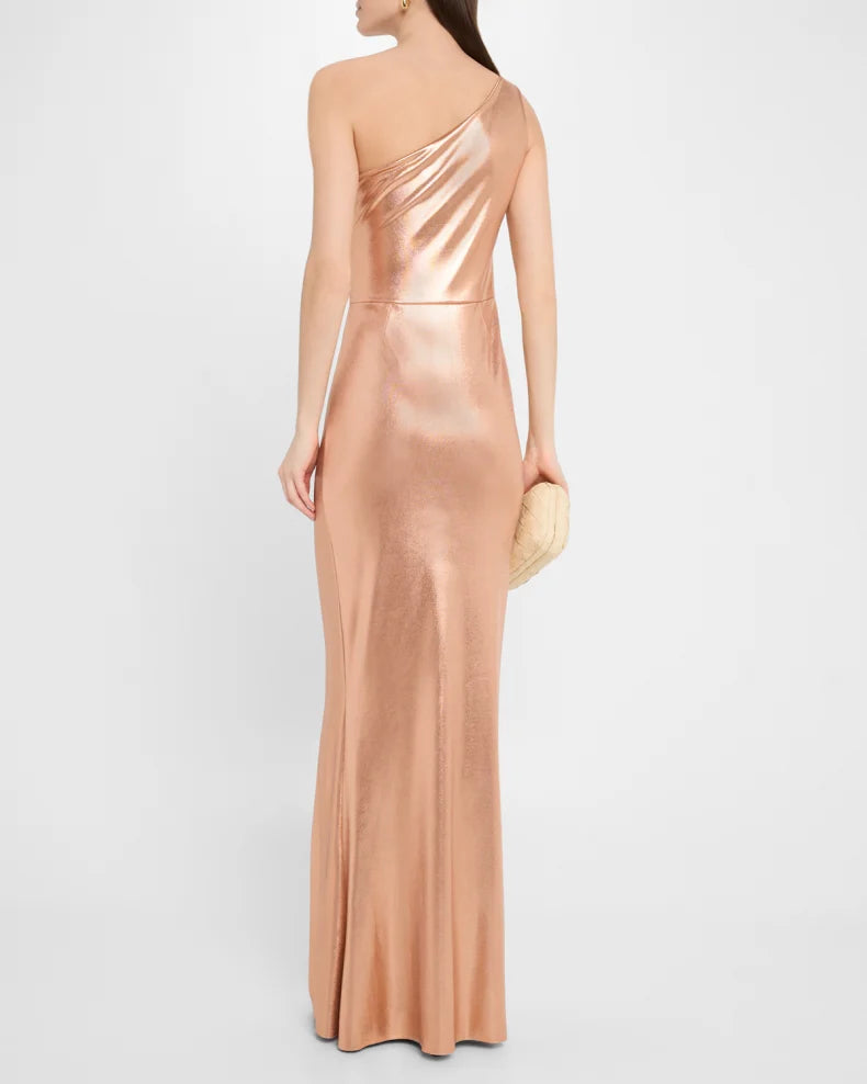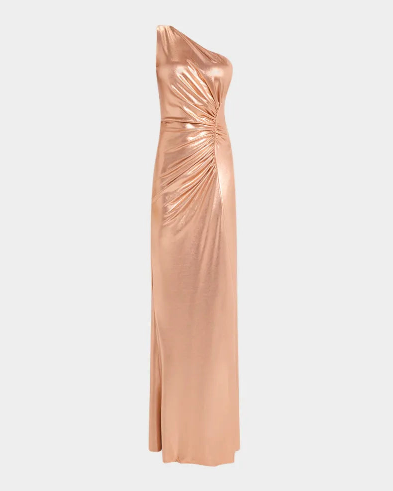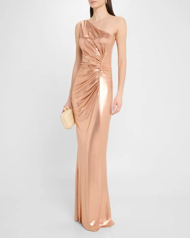 One-Shoulder Ruched Metallic Gown Simple beautiful generous and full of charm