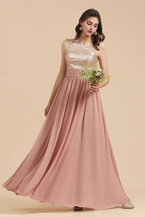 One Shoulder Sequins Dusty Rose Bridesmaid Dresses Simple gentle atmospheric and unique design