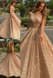 open back stunning prom dresses a line sequin formal evening dress Simple atmospheric gentle