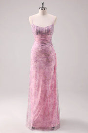 Pink Floral Spaghetti Straps Sheath Long Prom Dress simple gentle atmospheric and unique desi Bring summer colors to enhance whitenes snhance whiteness