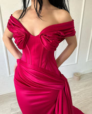 Refined Long Mermaid Off-the-shoulder Sleeveless V-neck Satin Fuchsia Prom Gown Simple gentle atmospheric and unique design - US 2 / UK 6 / EU 32