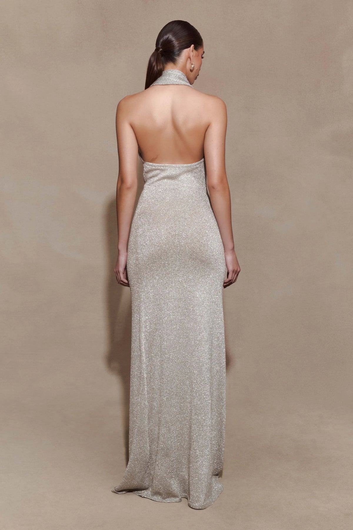 Refined Sheath Halter Neck Sleeveless Open Back Floor Length Prom Dress - US 2 / UK 6 / EU 32