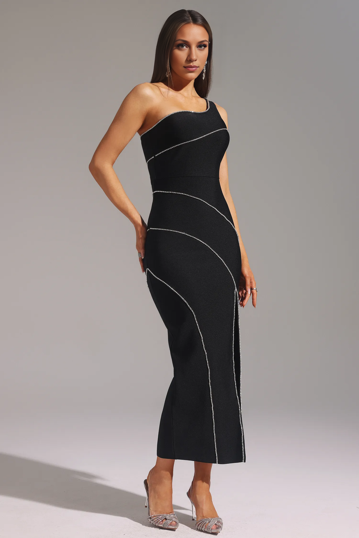 Saga One Shoulder Diamond Bandage Maxi DressSimple gentle atmospheric and unique design