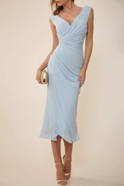 Semi-Formal Party Dress Light Blue Chiffon Cross-Over Sleeveless Midi Dress