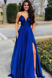 Sexy Floor-Length Sleeveless A-Line Satin Prom Dress with High Side Slit Simple gentle atmospheric and unique design