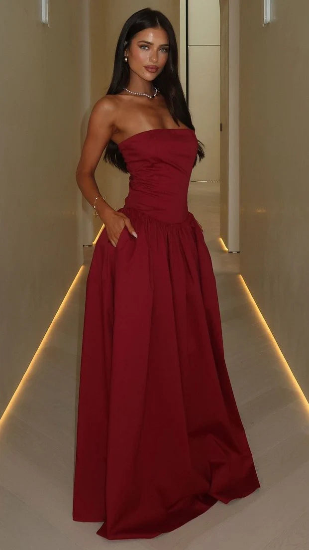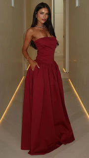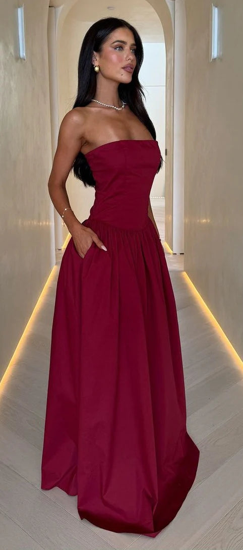 Sexy Mermaid Long Prom Dress Burgundy Prom Dress Strapless Evening Dress A-Line Party Ball Gown