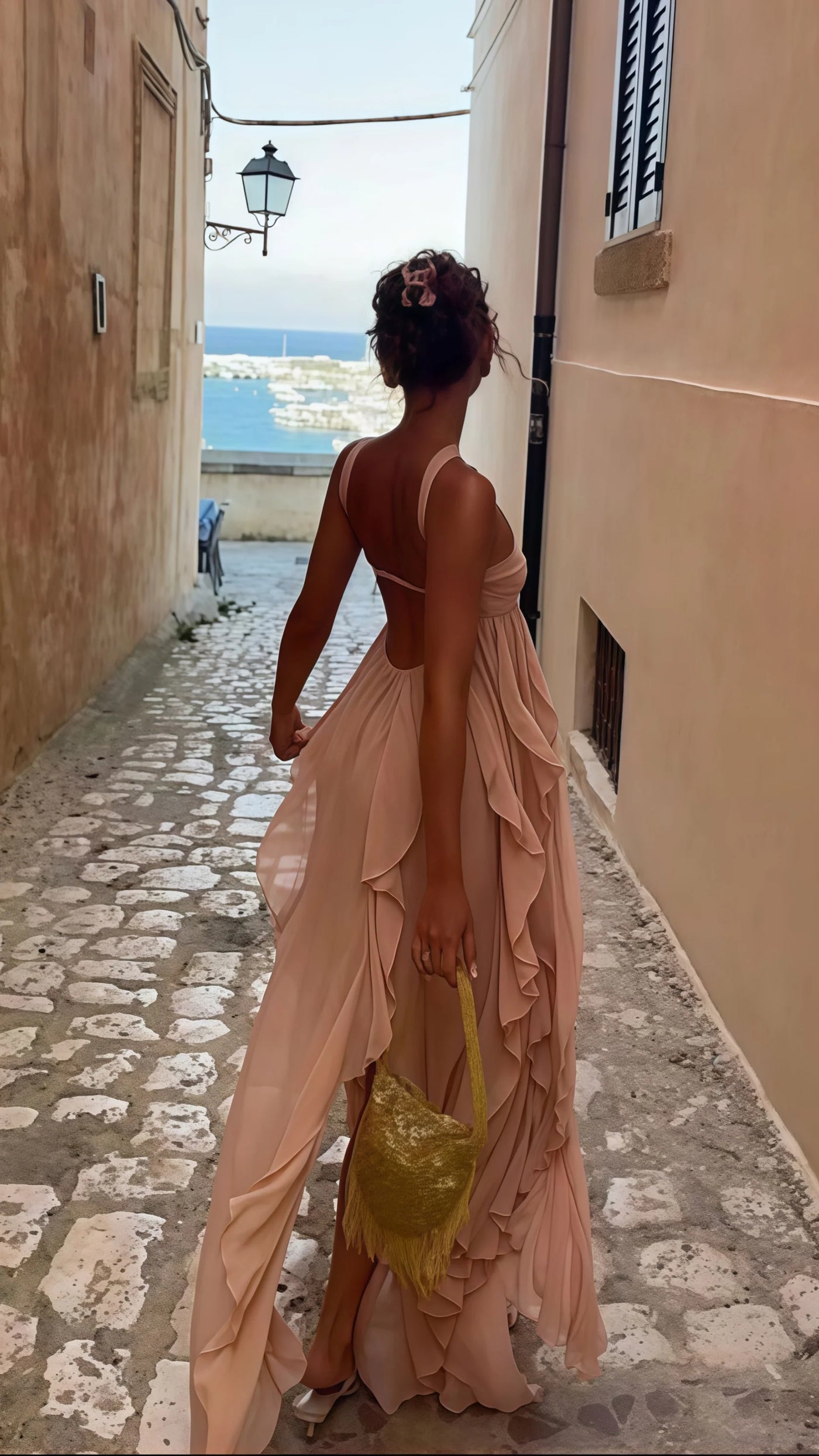 Sexy Mermaid Long Prom Dress Puffy Pink Chiffon Beach Party Dress Senior Prom Dress For Women