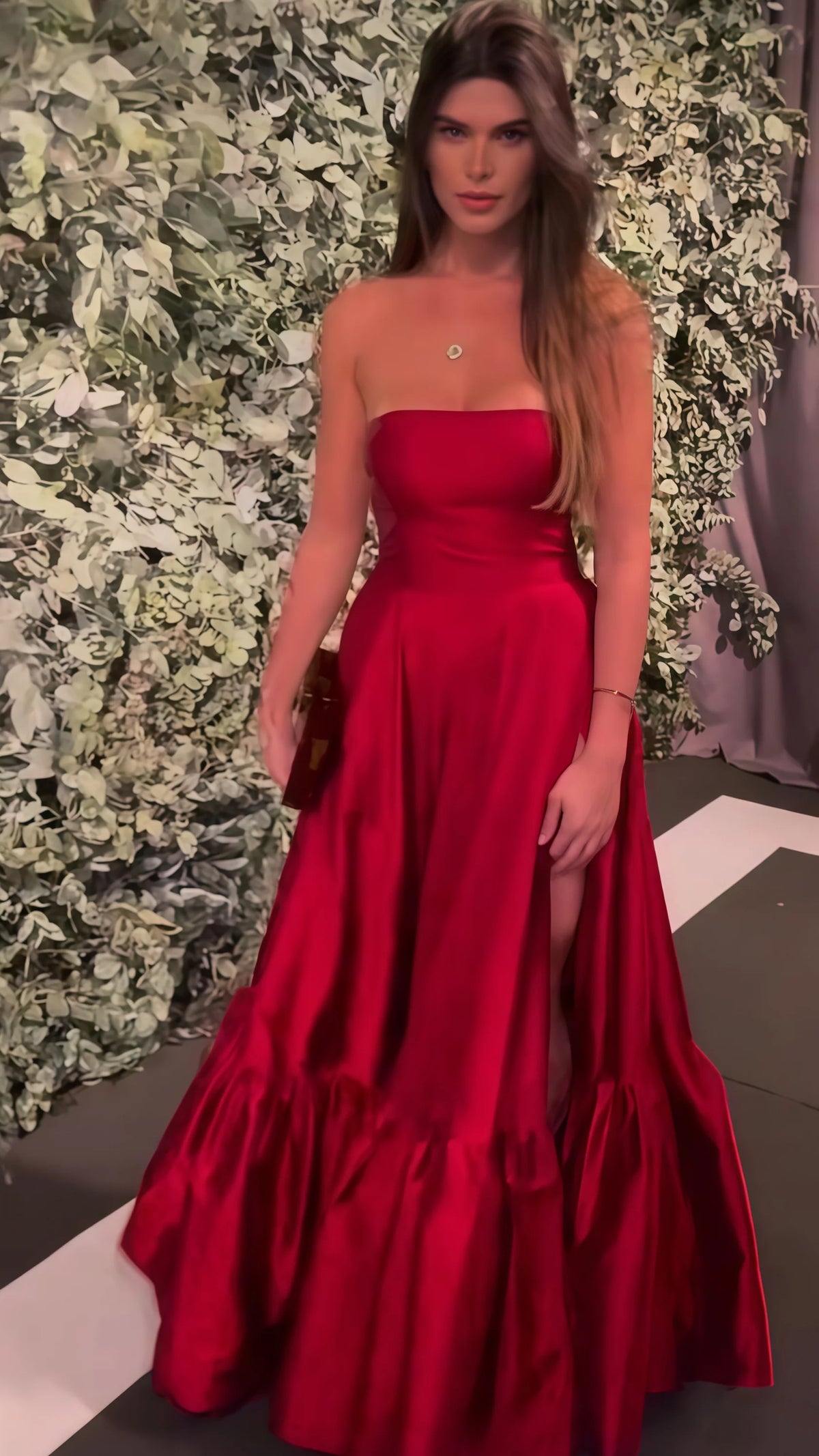 Sexy Mermaid Long Prom Dress Strapless A-line Satin Prom Dress With Side Slit