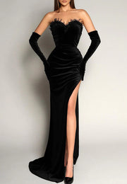 Sexy Satin Fitted Sweetheart Strapless Empire Beaded Ruched With Side Slit Party Prom Evening Dress Simple gentle atmospheric and unique design