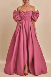 Simple beautiful generous and full of charm Formal Prom Dress Pink Off-Shoulder Side Slit Floor-Length Dress