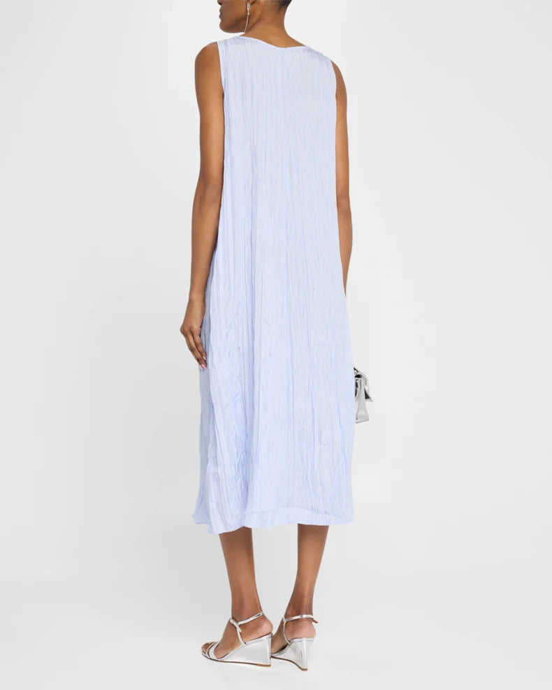 Sleeveless Crinkled Silk Midi Dress Simple beautiful generous and full of charm
