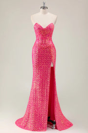 Sparkly Fuchsia Mermaid Strapless Long Prom Dress with Slit simple gentle atmospheric and unique desi