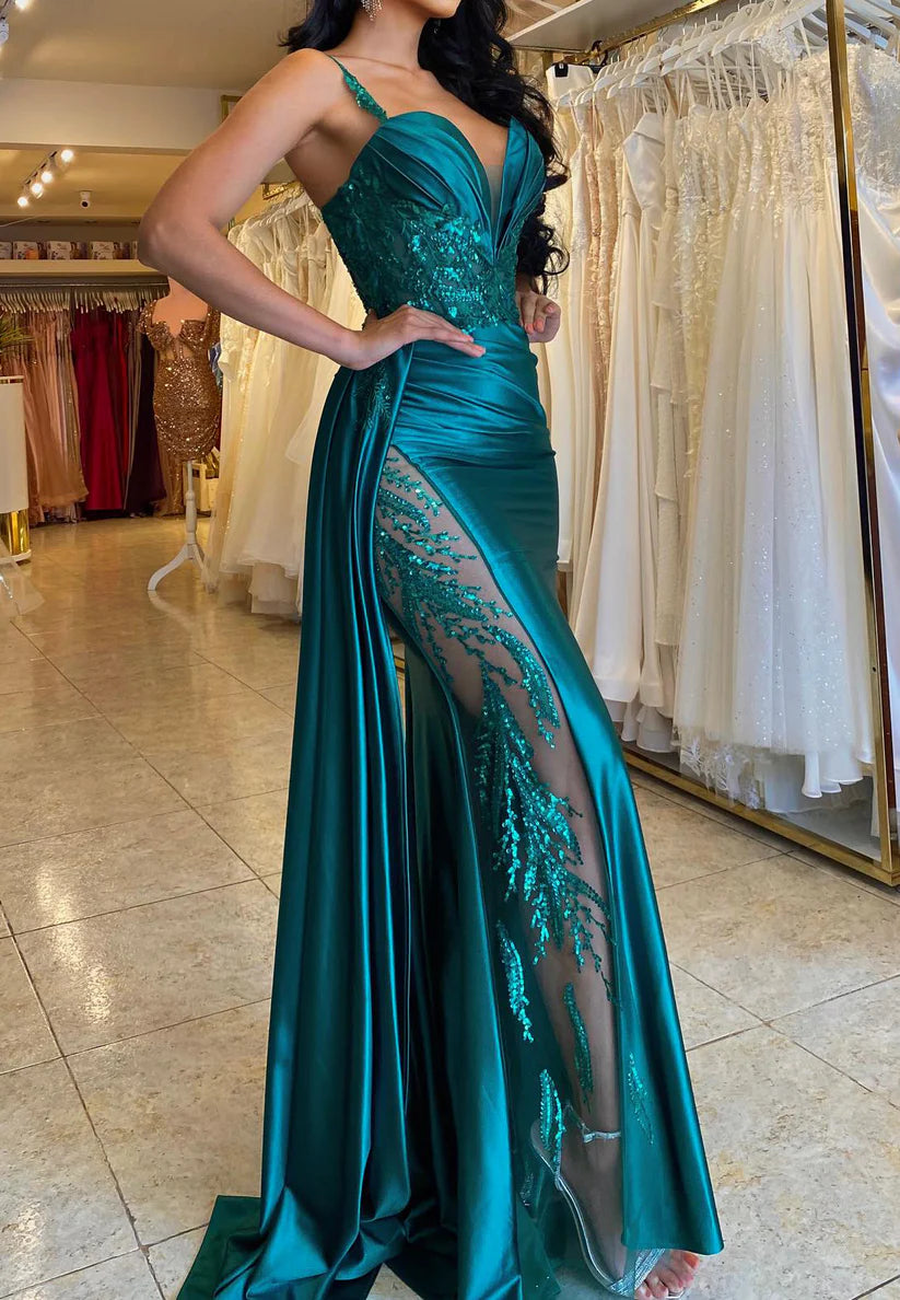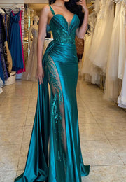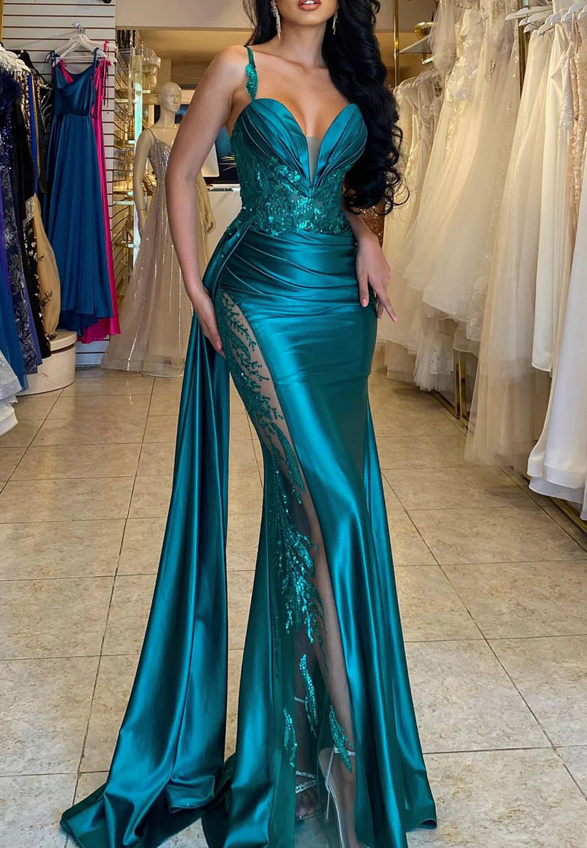 V-Neck Sleeveless Appliques Sheath Ruched Prom Dress Simple gentle beautiful and unique design