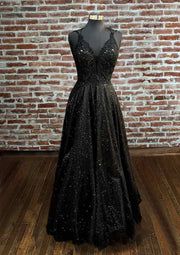 V-Neck Sleeveless Long Tulle Prom Dress/Evening Dress with Appliques & Beading