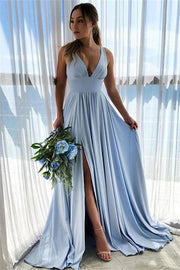V-Neck Sleeveless Simple Prom Dress Long Evening Gowns Simple gentle atmospheric and unique design