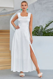 White A-Line Square Neck Long Prom Dress Simple gentle atmospheric and unique desig