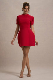 Daring A Line Mock Neck Puff Sleeve Asymmetric Hem Short Prom Dress