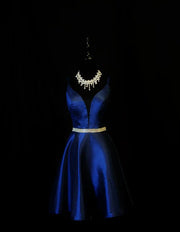 Pretty Spaghetti Straps Backless Homecoming Dress Royal Blue Satin Beaded Cocktail Dress simple gentle atmospheric and unique desi Bring summer colors to enhance whiteness
