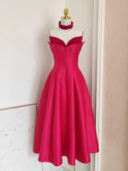 Sexy A line Spaghetti Straps Hot Pink Vacation Dress Satin Women Dresses simple gentle atmospheric and unique desi Bring summer colors to enhance whiteness
