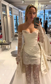 Elegant Spaghetti Strap Satin Lace Wedding Dress Bridal Gown - US 2 / UK 6 / EU 32