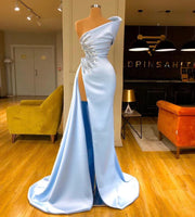 Baby Blue One Shoulder Prom Dress High Split Simple gentle atmospheric and unique design