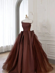 Classy Elegant Ball Gown Strapless Brown Tulle Sleeveless Long Prom Dresses simple gentle atmospheric and unique desi Bring summer colors to enhance whiteness