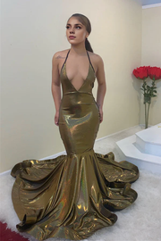 Deep V-Neck Prom Dress Mermaid Sleeveless On Sale Simple gentle atmospheric and unique design