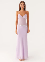 Lavender Spaghetti Strap Maxi Dress with Metallic Trim Sheer bodice Bridesmaid Dresses - US 2 / UK 6 / EU 32