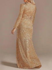 Trumpet V-Neck Long Sleeves Floor-Length Party Cocktail Dress with Sequins Simple gentle beautiful and unique design